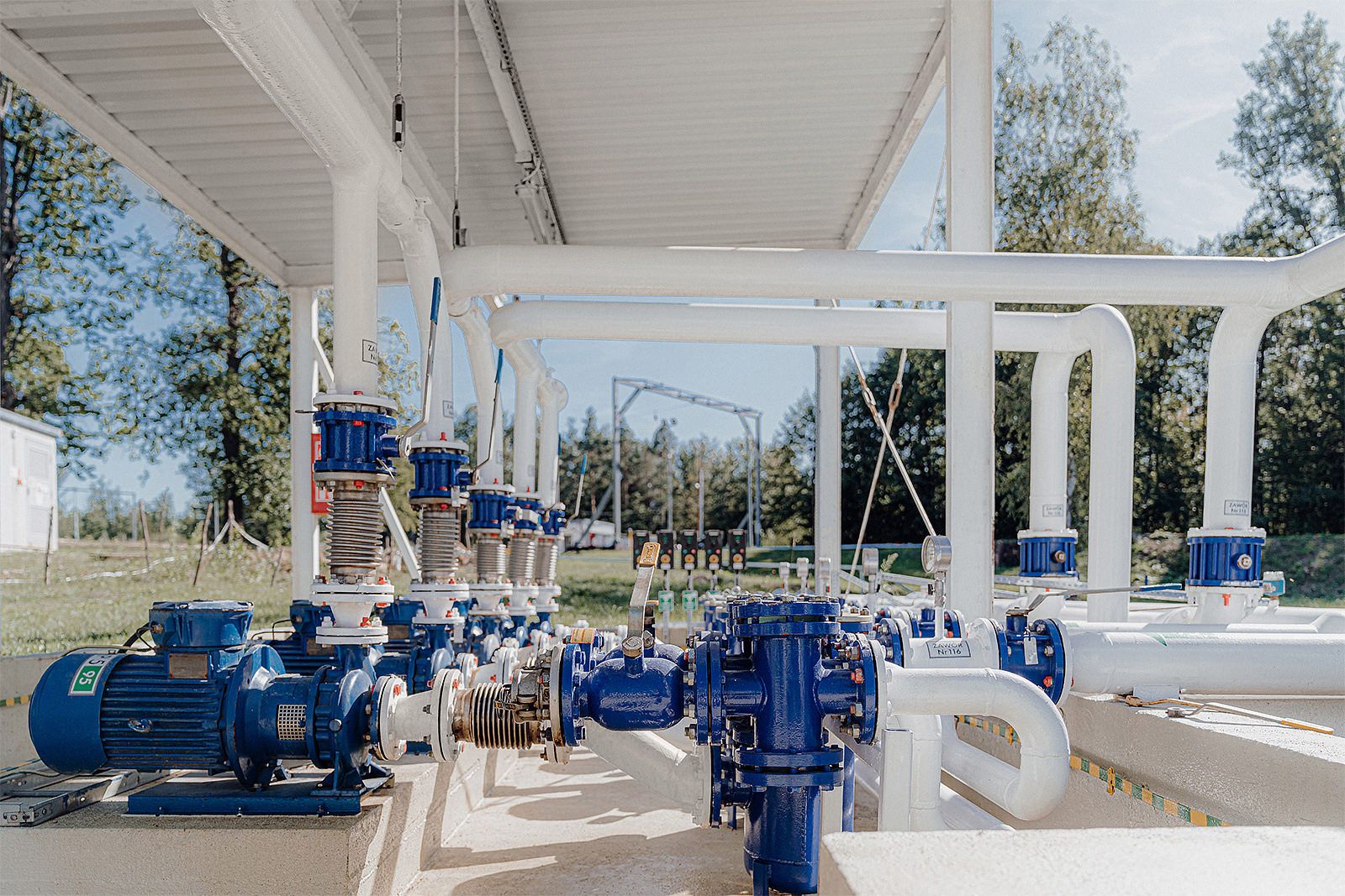 budowa 2 zbiorników każdy o pojemności 20 000 m³ wraz z niezbędną infrastrukturą towarzyszącą (sieci wodociągowe, kanalizacyjne, instalacje technologiczne, linie zasilające, linie sterownicze)